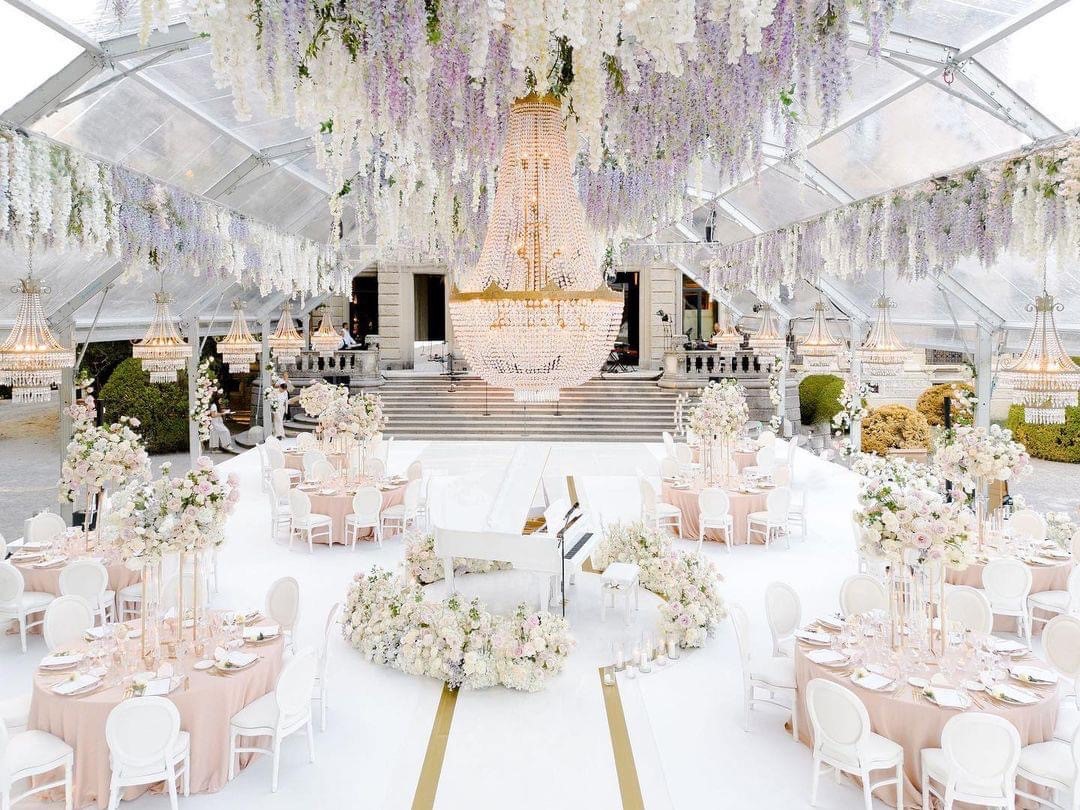 Grandi Lampadari adornano Villa Erba. Guarda le foto di questo matrimonio unico a Villa Erba sul Lago di Como. Nell’arredamento usiamo il nostro Tipo-3