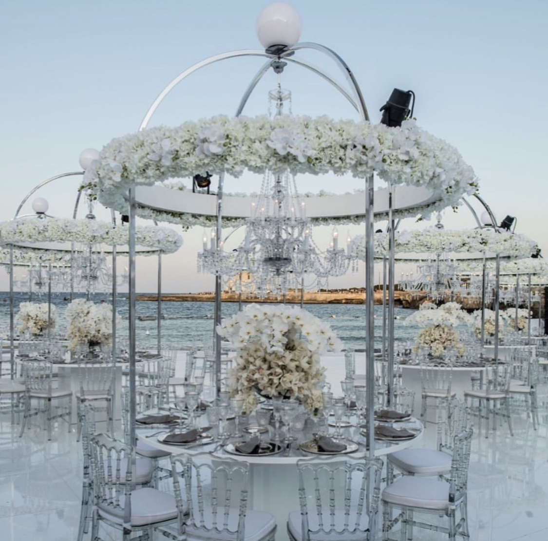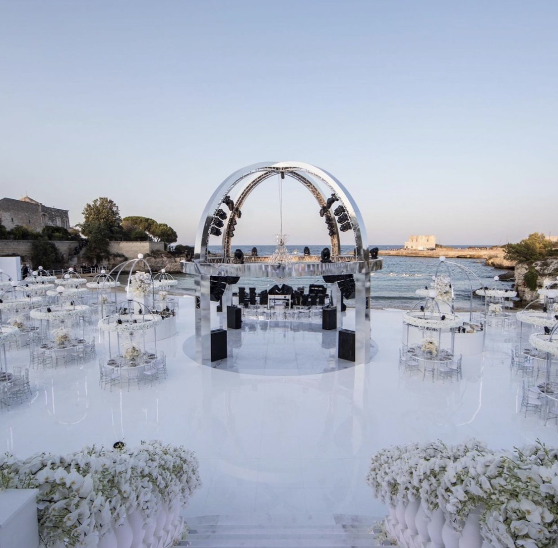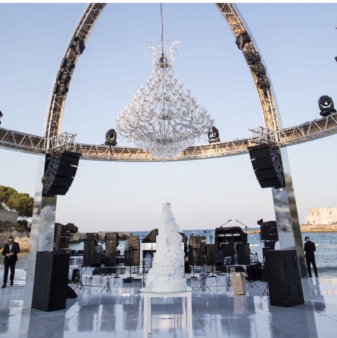 I nostri lampadari possono essere noleggiati in tutta Italia. Lavoriamo ovunque in Italia con i nostri lampadari di lusso. Di seguito un reportage fotografico di un matrimonio unico in Puglia. Ti portiamo al mare a Monopoli BA. Sulla spiaggia del Castello di Santo Stefano abbiamo creato un’esperienza unica con 80 lampadari. I nostri lampadari VZ-9 erano appesi sopra i tavoli da pranzo. Nell’arredamento contro le rocce i nostri lampadari VZ-15. Sopra la pista da ballo abbiamo appeso un lampadario molto grande di 3 metri. Lasciati ispirare da queste immagini.
